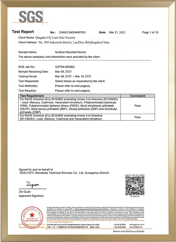 Nuestra producción de extensiones de cabello cumple con el estándar de la Unión Europea, pasó las certificaciones CE y RoHS; Se nos otorga la certificación de vendedor de oro.