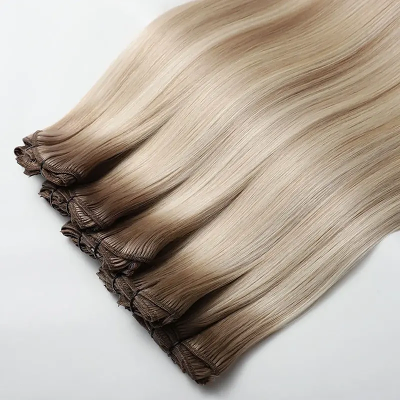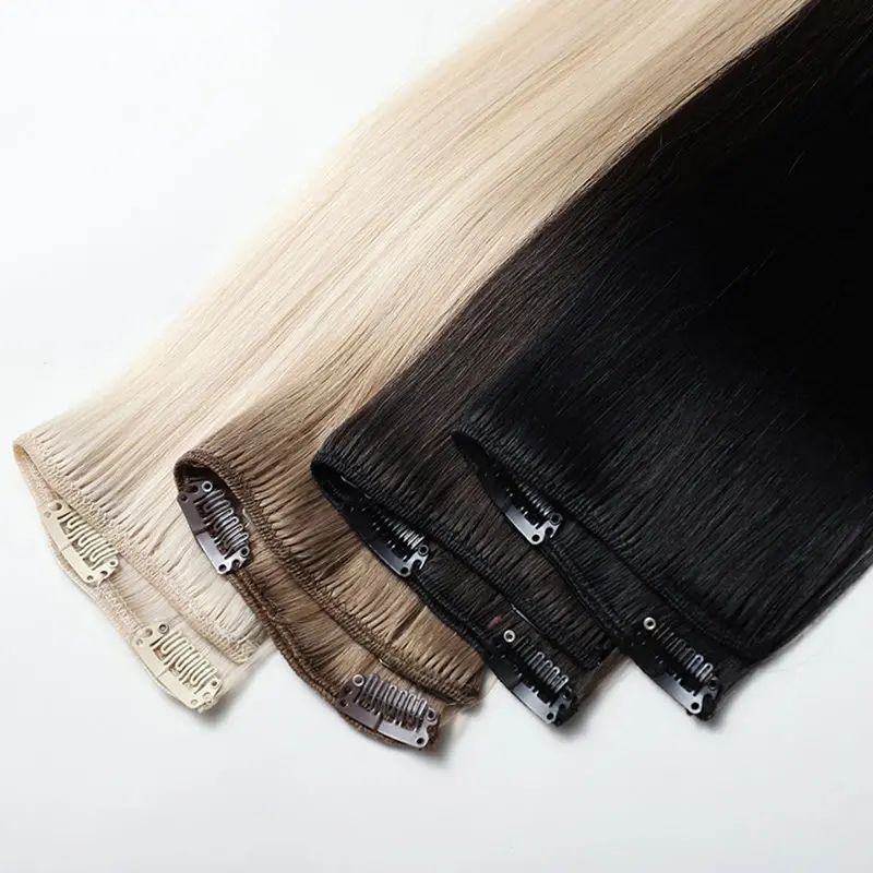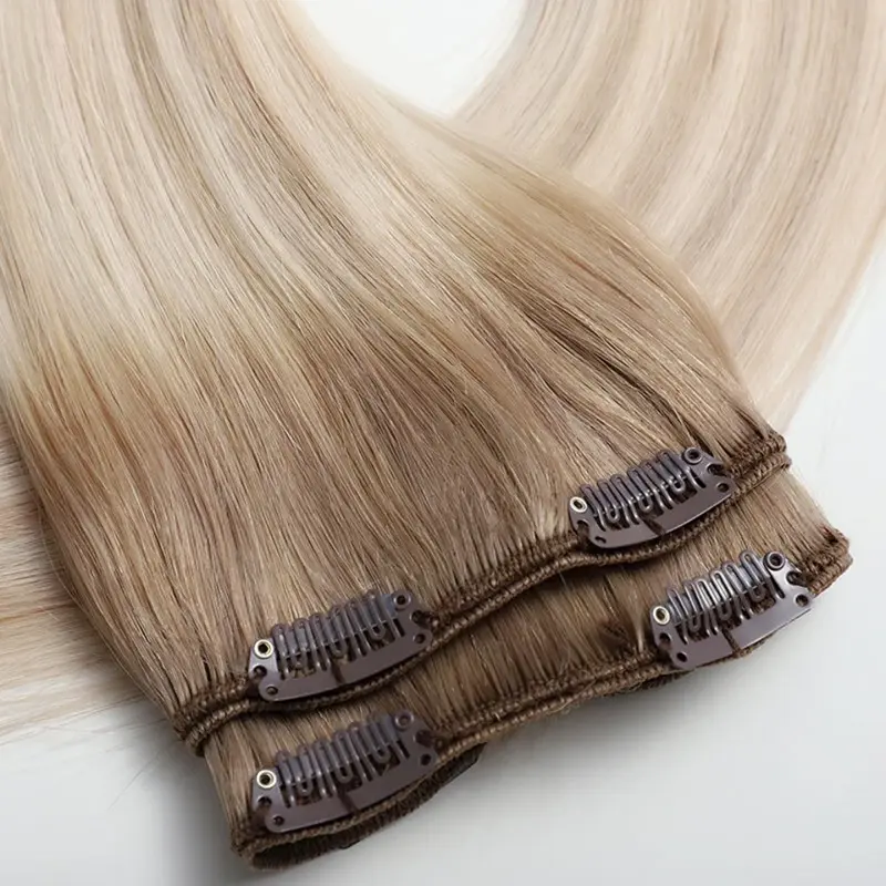 Según la definición tradicional, el cabello Remy se refiere al cabello 100% humano de alta calidad que se procesa cuidadosamente para preservar la dirección natural de la cutícula. Todos los hilos están alineados desde la raíz hasta las puntas en la misma dirección, lo que reduce los enredos y garantiza una apariencia y sensación suaves y naturales. No dude en contactarnos para conocer el precio de las extensiones de cabello con clip.