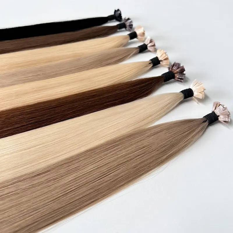 Mezcla natural: Las extensiones de queratina de punta plana son buenas para mezclar con el cabello natural. Su estructura plana queda cerca del cuero cabelludo, creando un acabado indetectable, perfecto para los salones que se esfuerzan por ofrecer resultados impecables a los clientes.