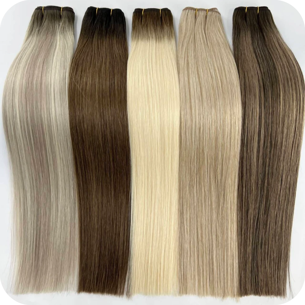 Nuestras extensiones de cabello de trama a máquina están hechas de cabello humano Remy de alta calidad, con cutículas intactas alineadas para evitar enredos y caídas, presentando una textura natural y suave que combina perfectamente con el cabello natural. Las tramas de cabello Lum son muy versátiles, están disponibles en múltiples longitudes, patrones de ondas y colores, lo que permite un peinado libre, como rizar, alisar y teñir, y satisface perfectamente las diversas necesidades de los diferentes tipos de cabello y preferencias de peinado. Son las preferidas por los profesionales de los salones de belleza y los amantes del cabello de todo el mundo.