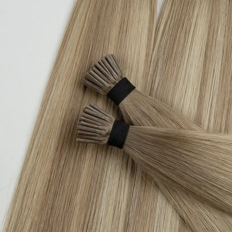 Versatilidad de peinado: las extensiones I-Tip ofrecen una notable flexibilidad en el peinado. Los usuarios pueden rizarlos, alisarlos e incluso teñirlos para combinar o realzar su cabello natural, lo que facilita cambiar de apariencia sin restricciones.